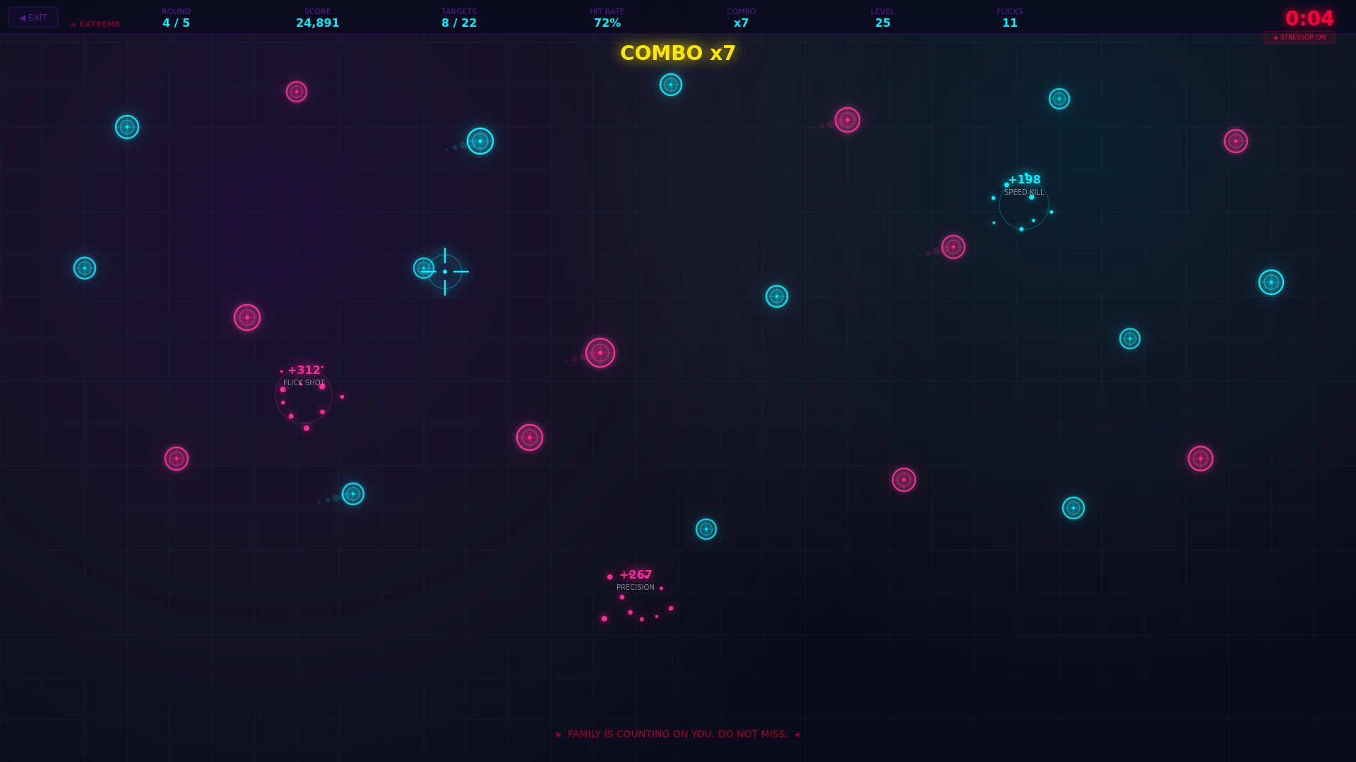 Features: 25 difficulty levels, 8 target movement patterns, reflex mode with timed targets, full AI demo system, 14 custom sci-fi sound effects, detailed performance scoring (precision, speed, combos, flick shots), motivational stressor system, works offline after download.